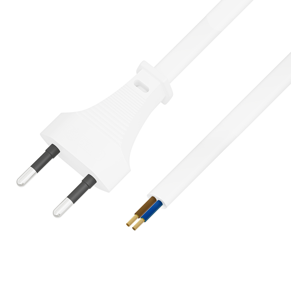 Сетевой провод изготовлен из высококачественных материалов и представляет собой многопроволочный медный кабель с сечением жил 2*0,5мм2 / 2*0,75мм2, оснащенный литой плоской вилкой евро стандарта. Отличительной особенностью является другая сторона провода, где отсутствует разъем и находятся зачищенные проводники, полностью подготовленные для дальнейшей эксплуатации, что делает шнур универсальным в использовании и подходящим для любых устройств, которые требуют питания от электросети 220В с максимальной силой тока не более 2.5А.