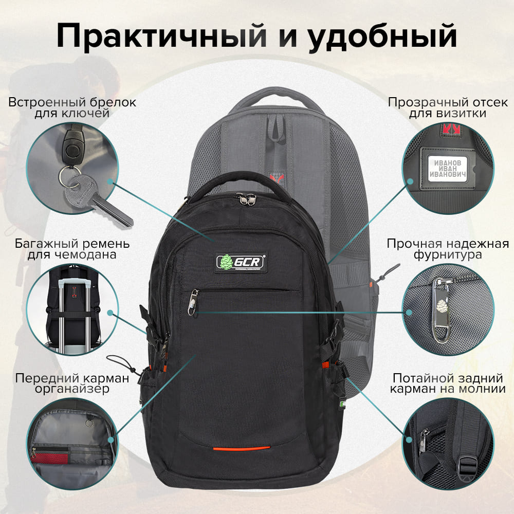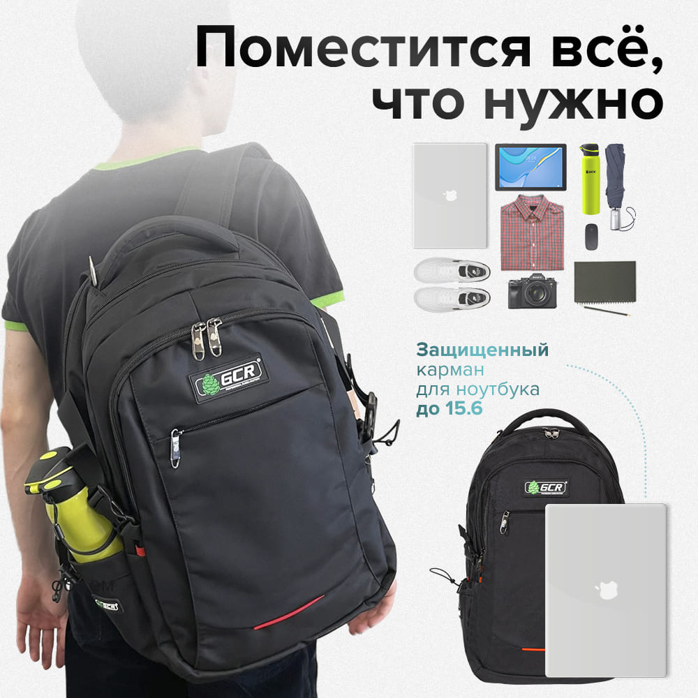 Городской рюкзак GCR-BAG с мягким отсеком для ноутбука, тремя просторными основными отделениями и множеством внешних и внутренних удобных карманов - это элегантное и универсальное решение для переноски ноутбука, планшета и любых других необходимых вещей в повседневной жизни или во время путешествий.