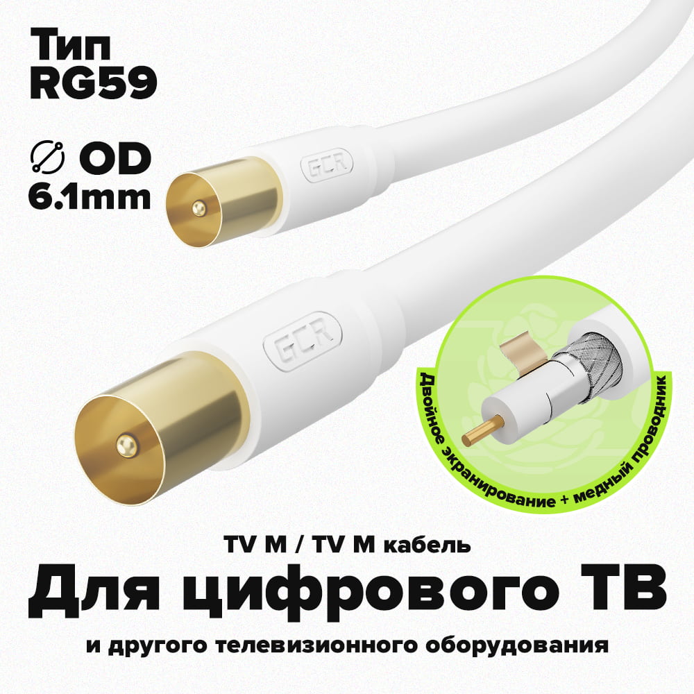 Коаксиальный кабель типа RG 6 / RG 59 с волновым сопротивлением 75 Ом предназначен для подключения антенны кабельного телевидения, ТВ-приставки, ресивера и другого телевизионного оборудования с портами TV-типа, кроме того его можно использовать в качестве удлинителя для передачи ТВ сигнала от антенны.