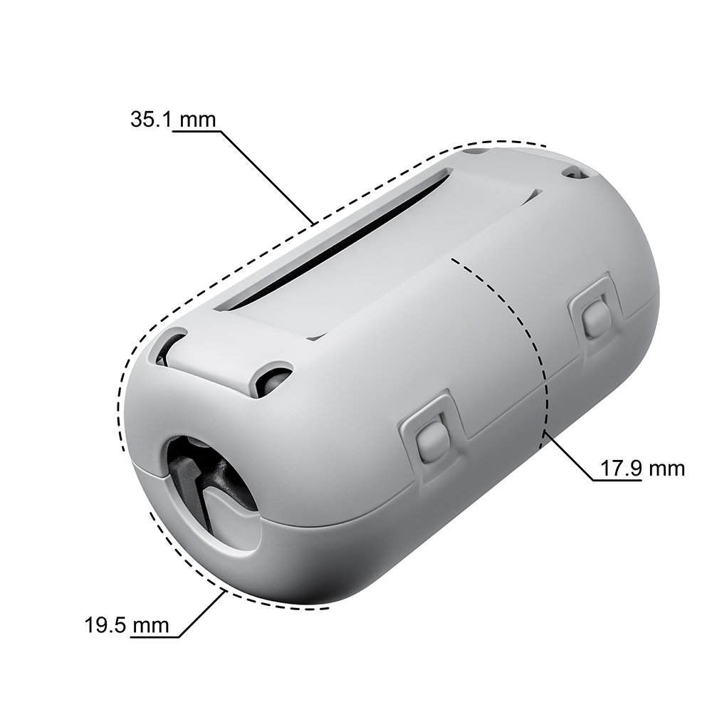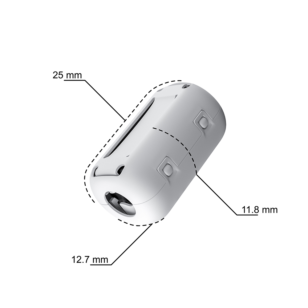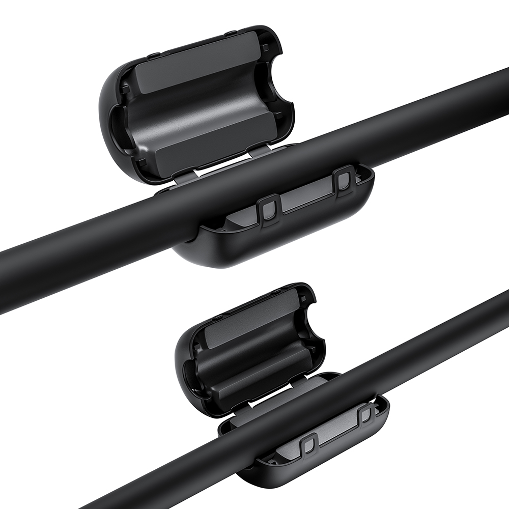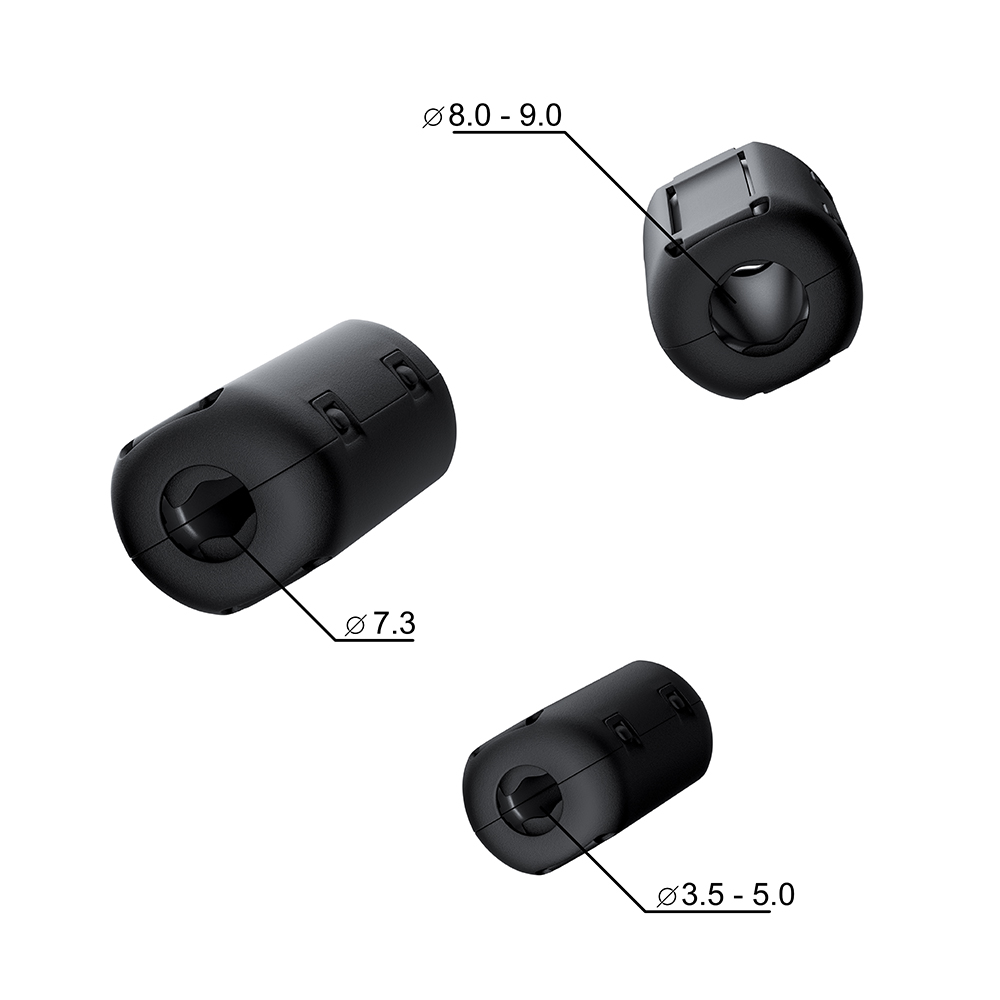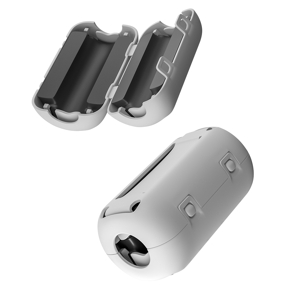 Ферритовый фильтр с защелкой представляет собой ферритовый сердечник из двух половинок, заключенных в прочный пластиковый корпус. Вы сможете легко закрепить кольцо на кабеле: установите фильтр примерно в 2-4 см от коннектора, далее сомкните и защелкните ферритовое кольцо на кабеле. На кабелях для передачи данных следует устанавливать фильтры с обоих концов провода.