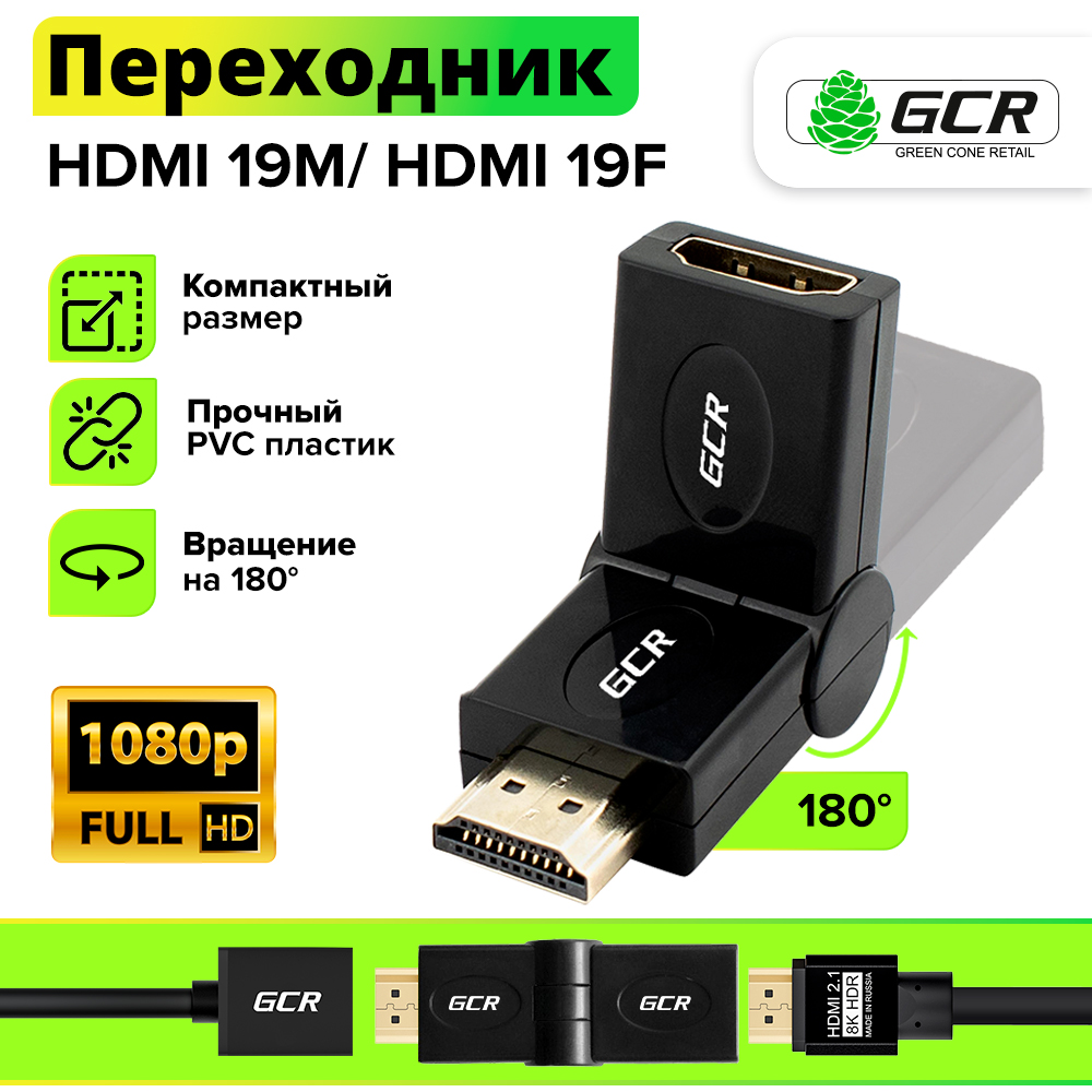Переходник HDMI - HDMI GCR 19M / 19F поворотный до 180 градусов