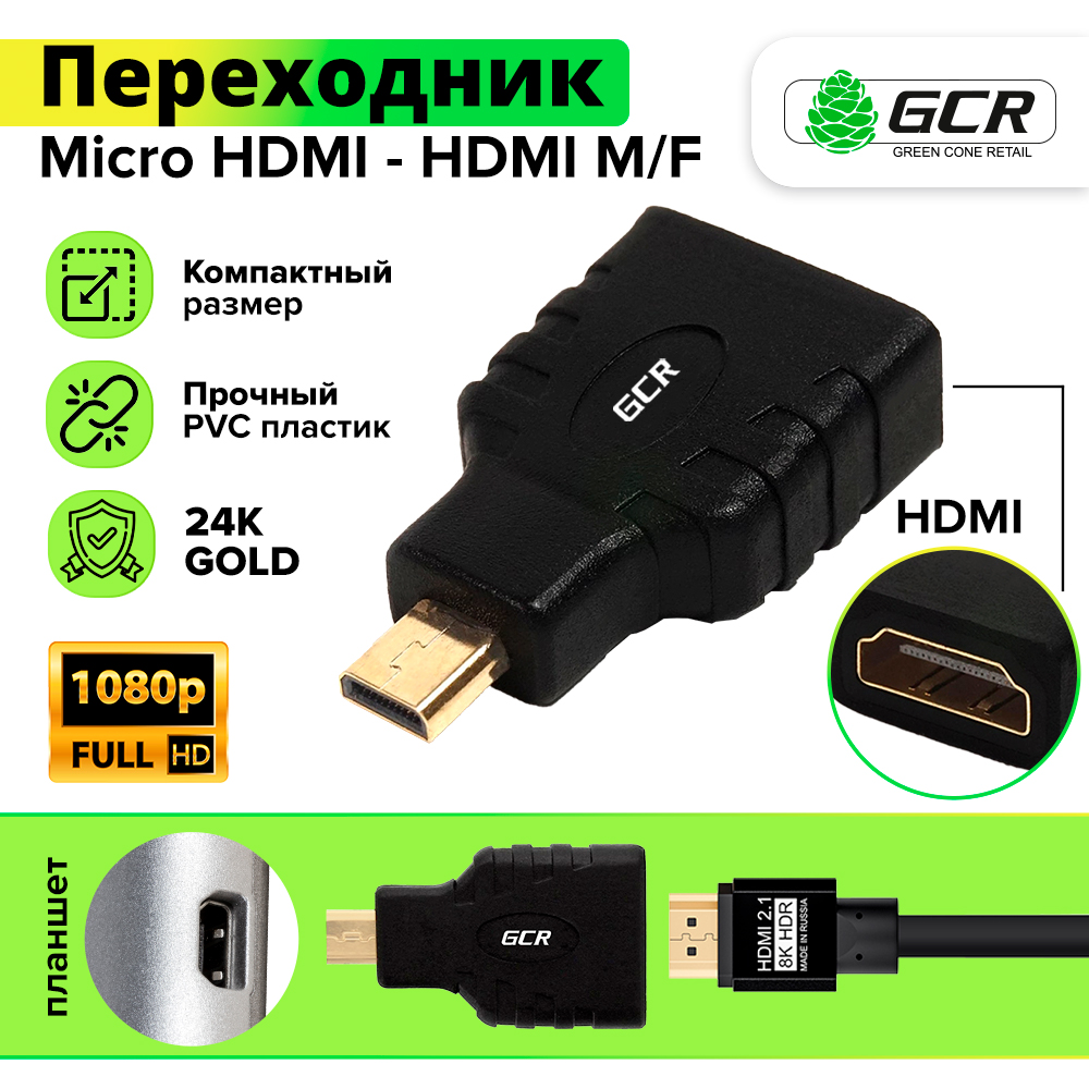 Адаптер преобразует Micro HDMI в стандартный разъем HDMI, исключая возможные заломы кабеля. С легкостью поможет подключить видеокамеру или планшет для передачи сигнала и последующего отображения в качестве HD 1080P на большом экране. Позолоченные коннекторы 24K GOLD устойчивы к износу и долговечны, а корпус из легкого и ударопрочного PVC пластика надежно защищает от внешних повреждений. Отличается компактными размерами и удобством использования: просто подключается и работает, не требует дополнительных драйверов.