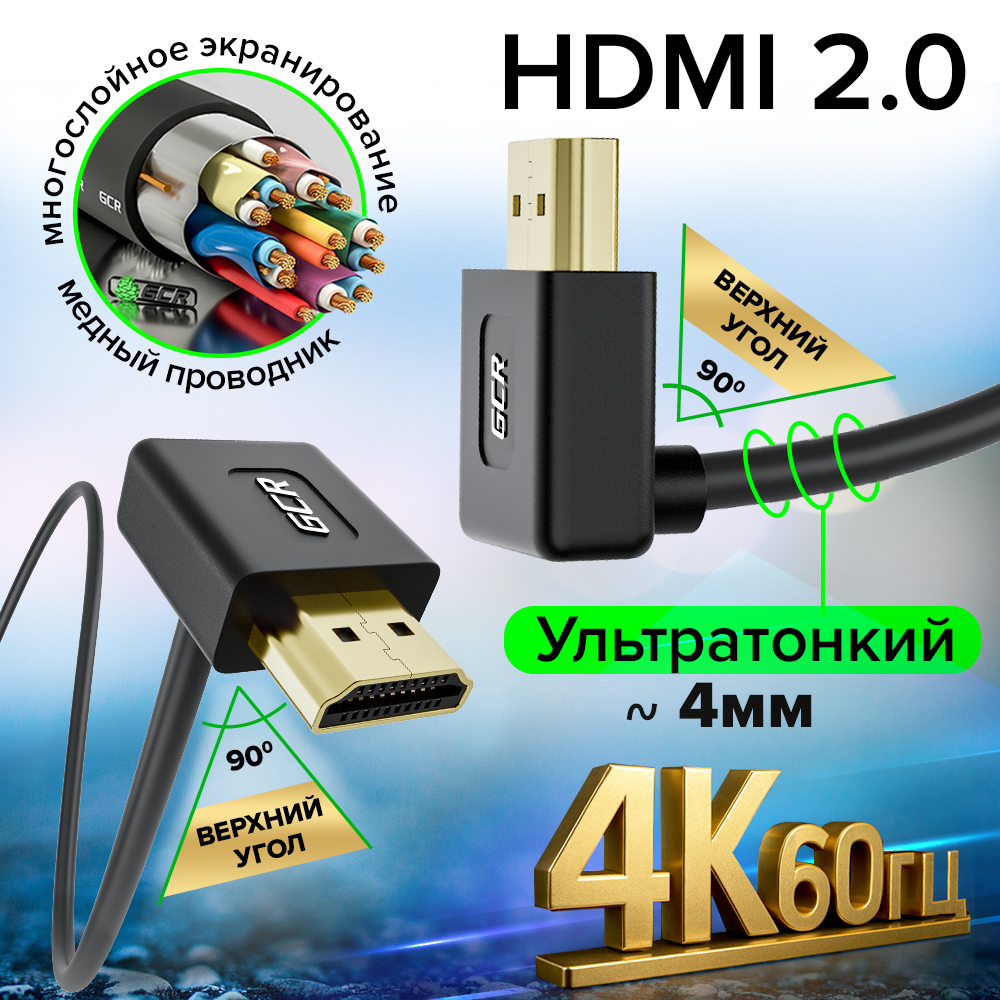 Кабель SLIM HDMI 2.0 М верхний угол / М верхний угол медь HDR 4:2:0 Ultra HD 4K 60 fps 60Hz 3D AUDIO 18.0 Гбит/с