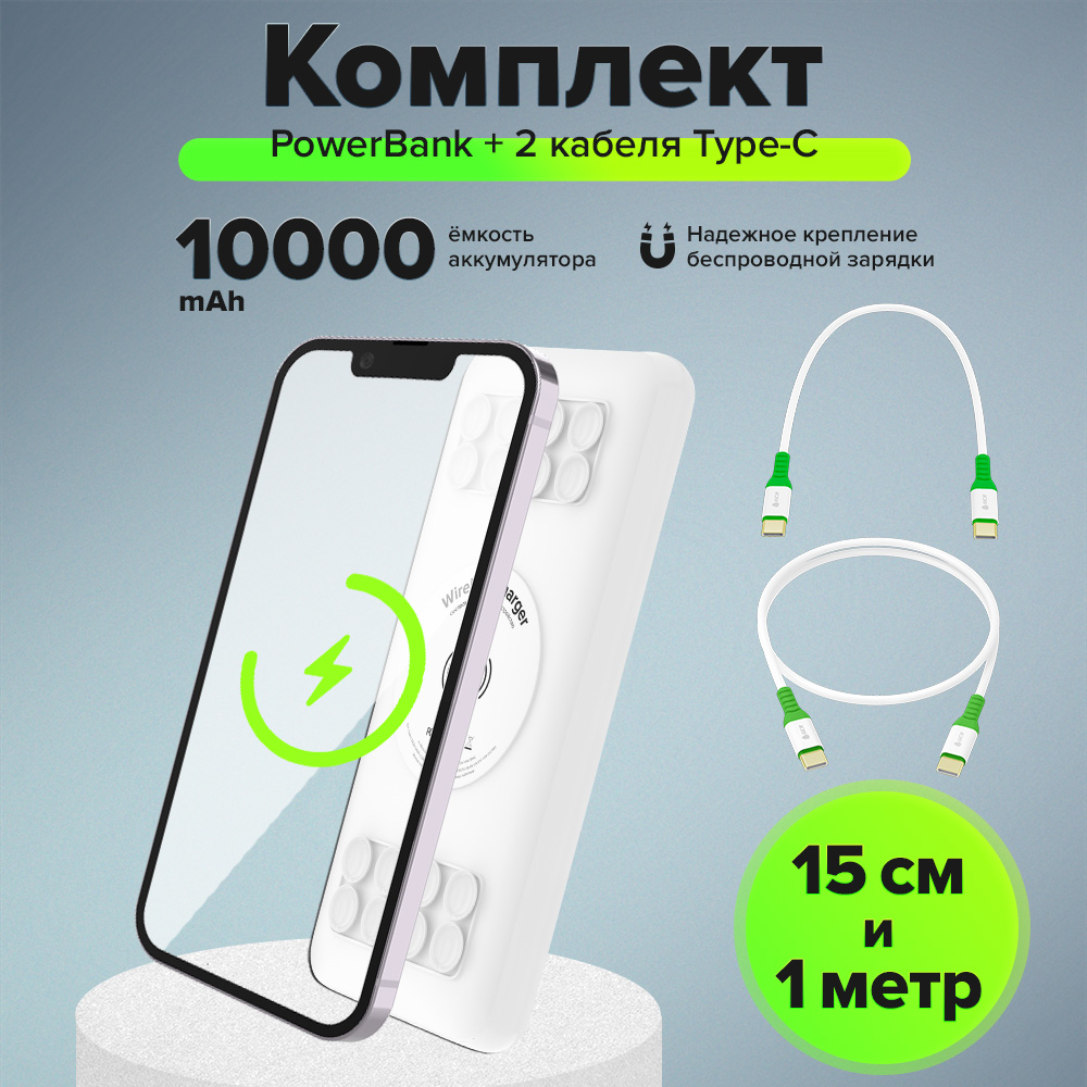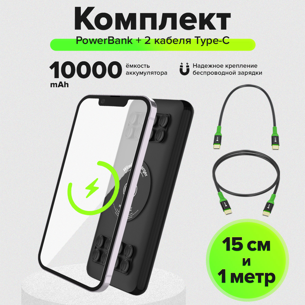 Комплект PowerBank на 10000mAh/20000mAh беспроводная зарядка Qi + 2 кабеля Type-C M/M PD 60W