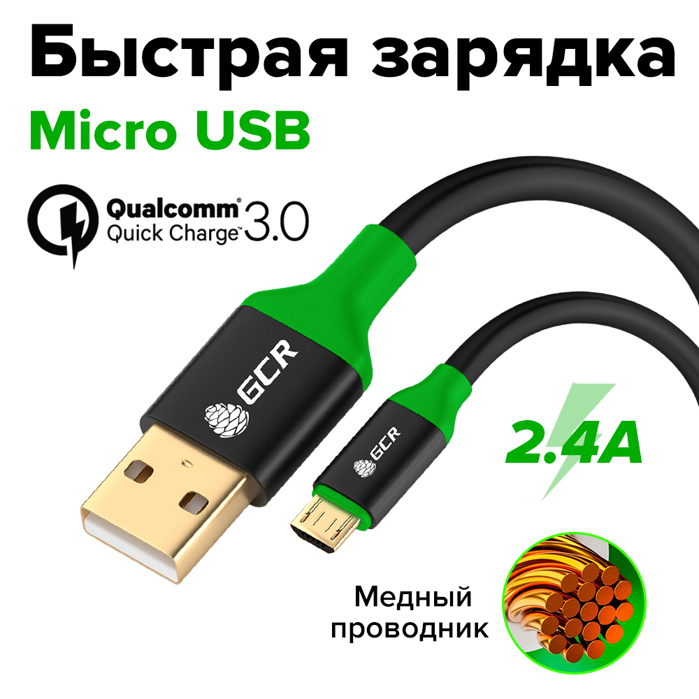 Кабель MicroUSB поддерживает стандарт быстрой зарядки Quick Charge 3.0 и совместим для использования с адаптерами питания 2.4А. Быстрая зарядка позволит зарядить телефон с 0 до 60% менее чем за час! Аксессуар гарантирует бесперебойную передачу видео, фото, музыки и других данных со скоростью до 480Мбит/c.