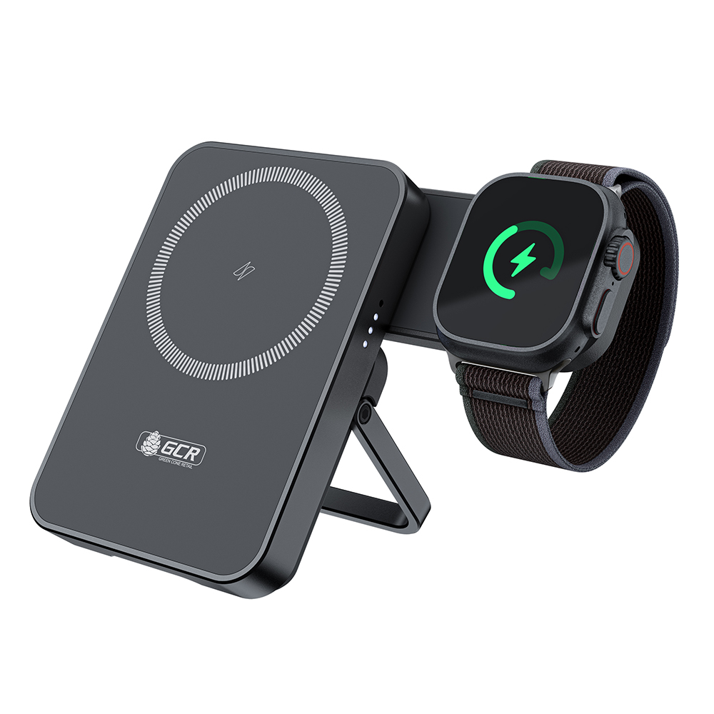 PowerBank магнитный 2в1 на 5000mAh MagSafe беспроводная зарядка + Type C PD 15W складная подставка