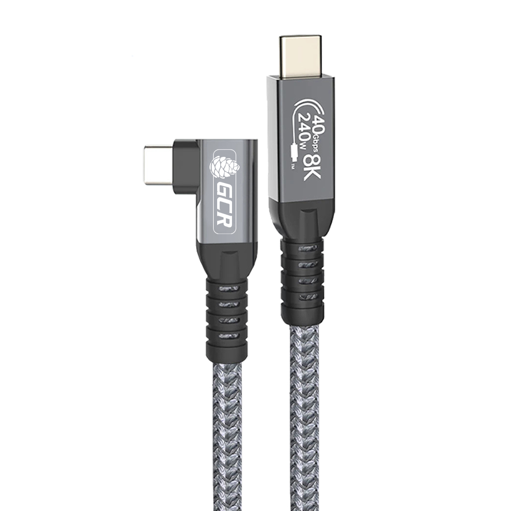 Кабель USB4 Type-C угловой 40Gbps 240W 8K60Hz M/M медь один разъем Г-образный боковой