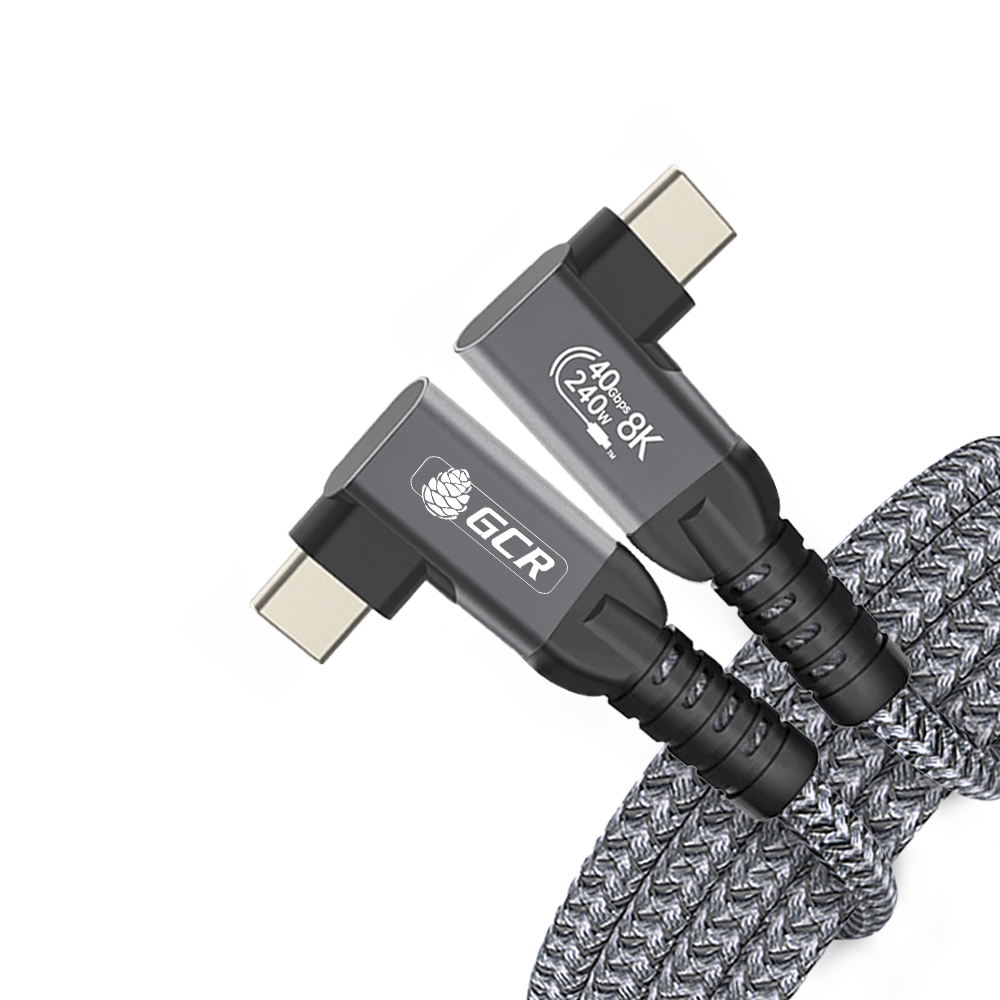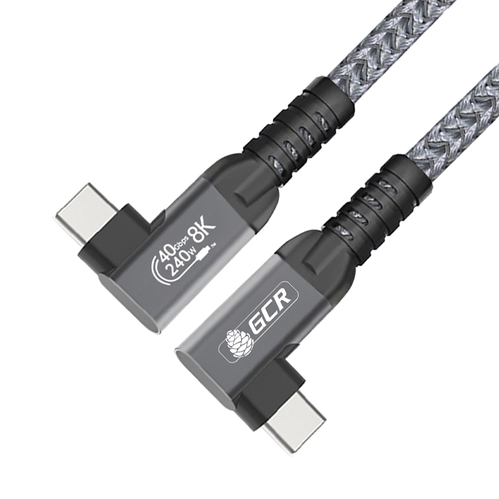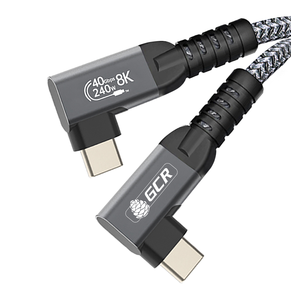 Кабель USB4 Type-C угловой 40Gbps 240W 8K60Hz M/M медь разъемы Г-образные боковые в оплетке текстиль