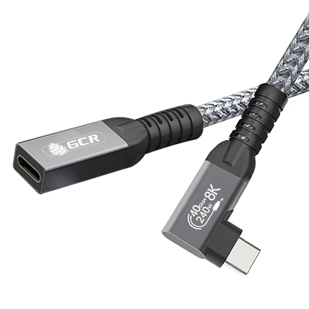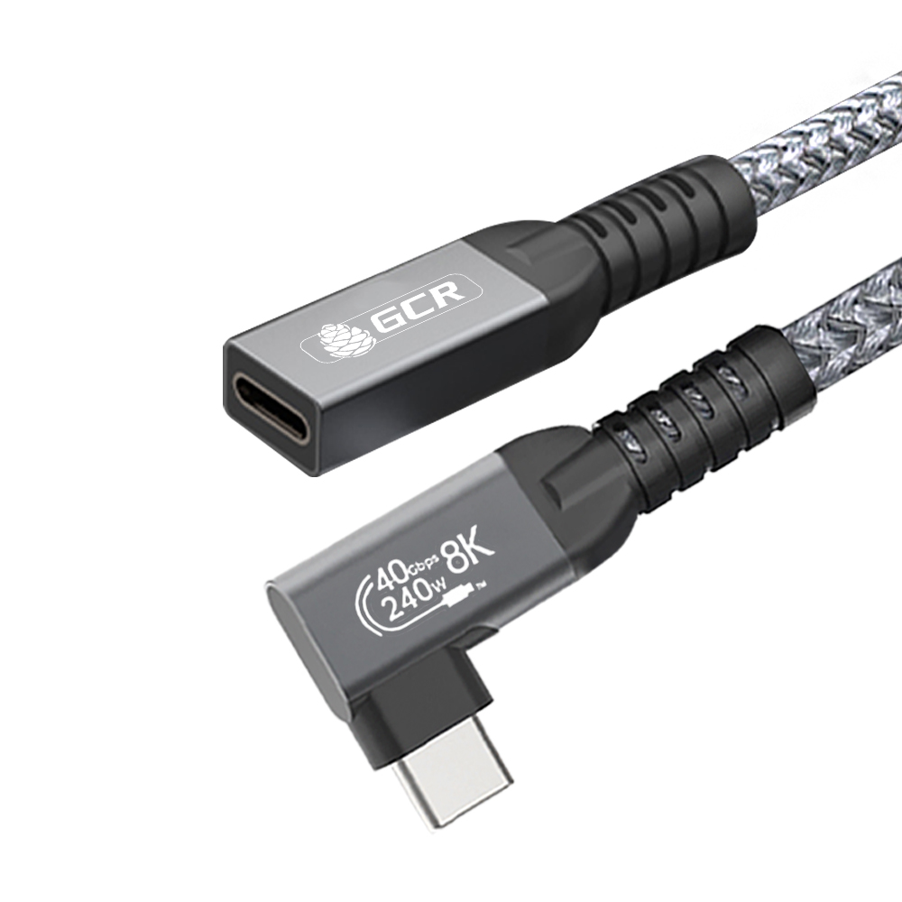 Удлинитель USB4 Type-C угловой 40Gbps 240W 8K60Hz M/F медь штекер Г-образный боковой